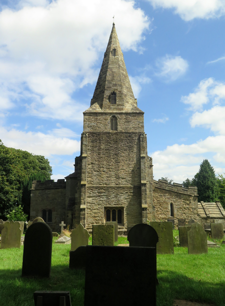 Lying on an ancient road that runs from Chesterfield westward across the moors, the church of St. Peter and St. Paul was established c.1100 and, approaching from the south-west through the C19 lychgate, the squat tower, with a slit window on the south elevation, is Norman in date.