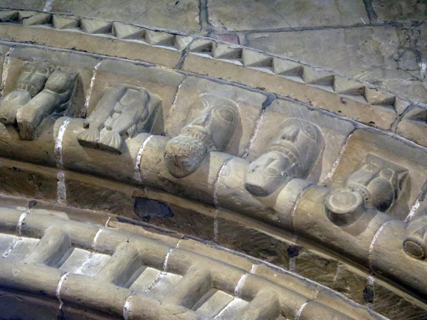 Roman altar stones and Anglo-Saxon gravestones found in the area are now in Leeds City Museum but, although I didn’t see it, there is apparently a Roman capital here; however, the stone coffins – supposedly both Anglo-Saxon and Norman – are clearly seen, as is the section of a mediaeval font and various grindstones from the old Adel Mill.
