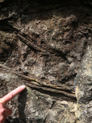 After taking a few photos of the stonework to the old farm opposite the church and the terrace of cottages next to the churchyard, which exhibit characteristics of colour and texture that I had seen elsewhere in the Oaks Rock.
