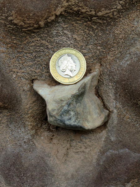 The only inclusions that I have seen in the Rotherham Red sandstone are ironstone pebbles, which are sometimes concentrated into conglomeratic beds, and I wondered if these might possibly be pieces of fossilised bone.
